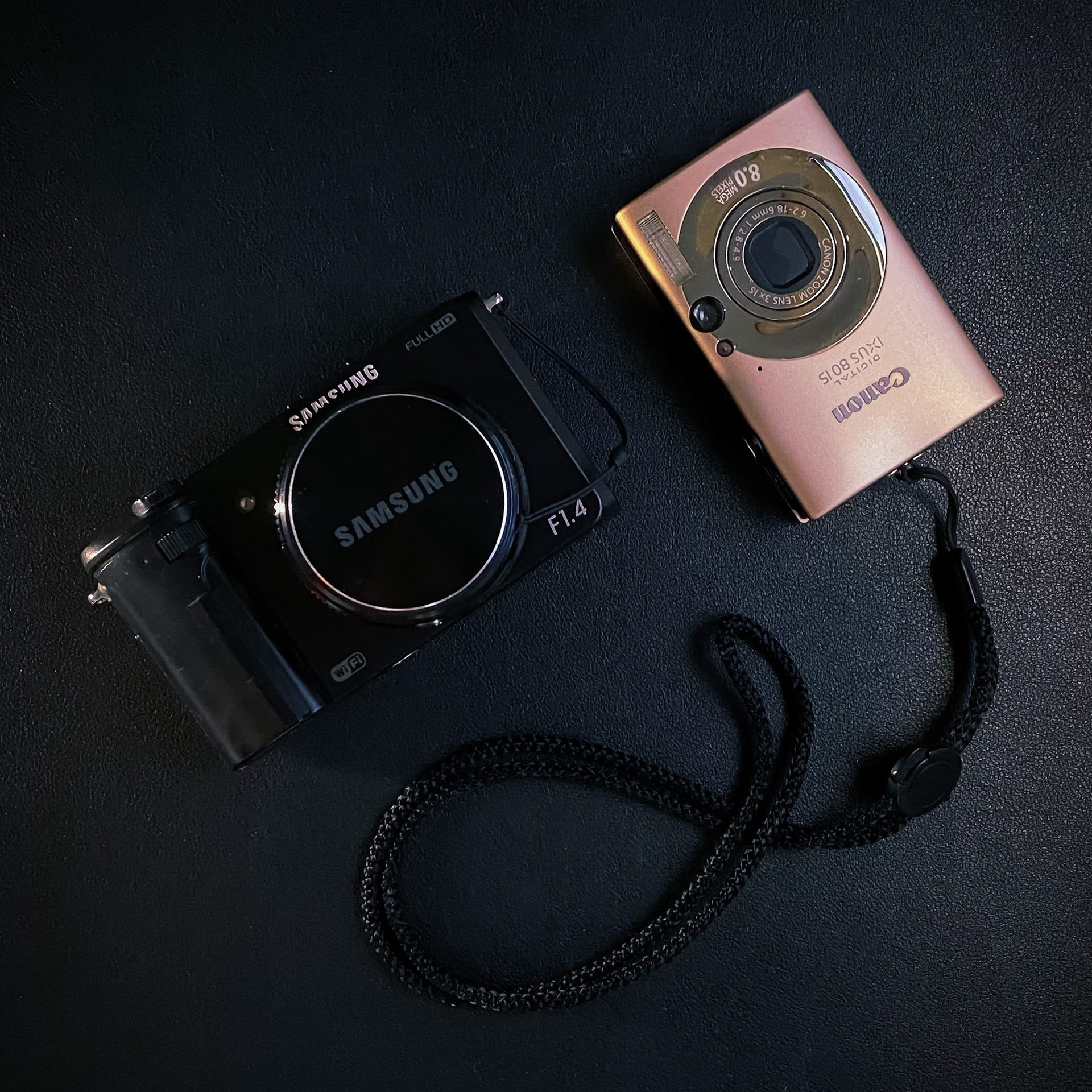 My sister’s still-functioning Samsung EX2F (left) and the non-functioning Canon Digital IXUS 80 IS (right)